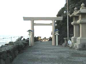 沖の海中にあり、猿田彦大神縁りの霊石、興玉神石を遙拝するため、約1300年前、天平年間(729〜748)に行基が江寺を創建されてそこの鎮守の神とされていたといわれる。かっては伊勢神宮へ参拝する人はここで禊ぎをするのが慣わしであったという。天照大神をお参りする前に、天孫をご案内した猿田彦大神にご挨拶をしておかなければいけないのでしょう。