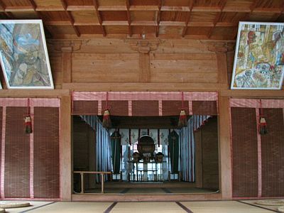 由緒:創建年代は不詳ですが、古老の口碑によると日本武尊が熊襲征伐の為西下されたとき、幣田川(現平田川)川口の伊倉より船にて川を上がられ、川岸の年の森に船を寄せ、現社地の東南の高台の御山に宮居を定め、暫しこの地に留まられ熊襲征伐の後再び立ち寄られました。後の仁徳天皇の御宇(西暦300年代)人々は尊の高徳を慕い、宮居の地に向かって現社地に神殿を建立し、尊を祭神として創始したと伝わります。