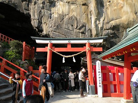 結構急な石段を降り左手の岩窟の中に本殿が建っています。