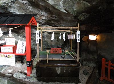 お乳水。お乳岩から出るお乳水は今もなお絶え間なく玉のような岩清水を滴らせて、安産・育児・身体健全その他心願成就がかなうことで知られているようです。