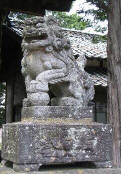 この神社は県道48号線を走っているときに夫が「おい、神社があるぞ。狛犬も居るみたいだぞ。」というので急遽立ち寄った神社です。地図には掲載されていません。市内から西に来て県道48号線を倭交差点で南下すると直ぐ左手に杜があり、社号標と鳥居が見えます。ここが大和神社です。昭和33年の狛犬でしたが所謂機械彫りのしょうわ狛犬ではなくて、手彫りのはじめ昭和に近い狛犬でした。台座に牡丹のお花が彫ってあったり、機械では出せない温かみが感じられます。狭い境内ですが道路端で良く見えるので、道行く人達にも安らぎの気持ちを持ってもらえるのではないでしょうか?