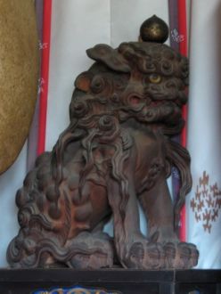 参道狛犬を木彫にしたような神殿狛犬。