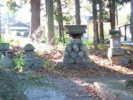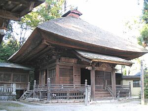 | 境内の佇まいと宝永8年(1711)建立の県宝・三重塔 木食信法阿の勧進で、松本平唯一の優雅な三重塔です。 柿葺の屋根が葺かれ、蛙股には人身獣面の十二支の彫刻が施されています。 |