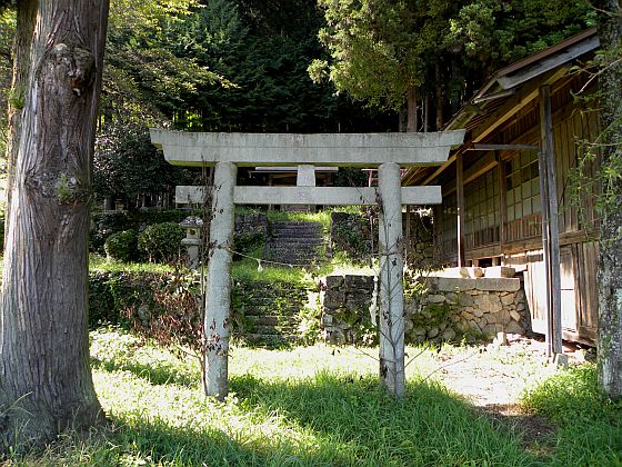 この神社は、中央高速・松川ICの南3km程の辺り、中央高速の西側斜面に鎮座しております。山沿いの長閑な風景の中に溶け込むような、静かな神社で都会の喧騒を暫し忘れるのも良いのではないでしょうか。当然ながら、由緒書きは無く詳細は不明です。