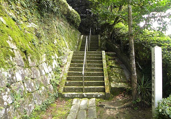 熊野神社の鳥居前の赤い手すりの付いた石段を上って行くと、