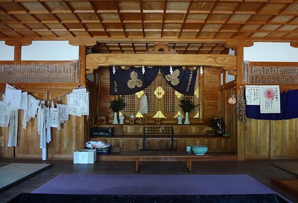 | 拝殿内にある「赤ちゃん用」の小さい木製鳥居 |