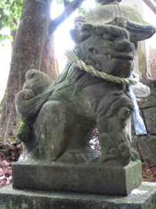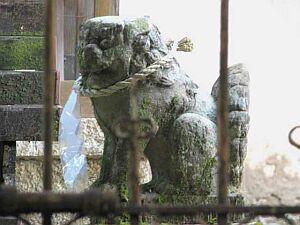| 上記境内社の狛犬。逞しい体躯で、彼方を厳しくにらみ据えています。 | |
