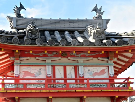 黄檗宗・龍華山. 1705年(宝永2年)、柳澤吉保が甲斐の国に創建した同寺を、その子柳澤吉里が甲府から国替えの際、享保9年(1724)当地に移築した寺院です。歴代郡山城主柳澤家の菩提寺となっています。市指定文化財の山門は旧郡山城城門を移築したもの/竜宮城のような門は「弁天門」です。