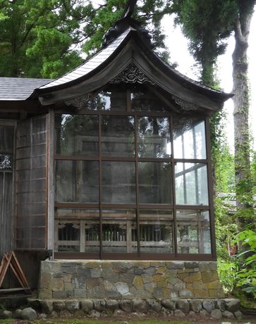 拝殿内部。本殿前に市指定文化財の木造狛犬がいます。然し遠く暗く写真は撮れませんでした。