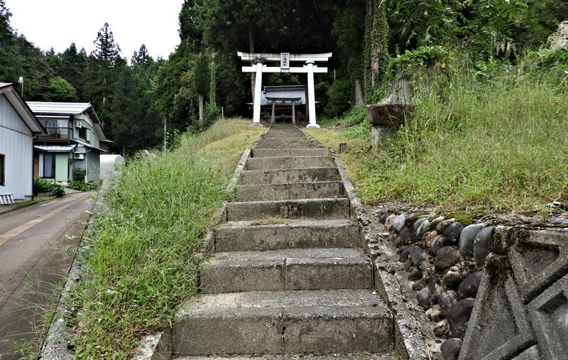 東経138度41分55.90秒、北緯37度16分35.84秒に鎮座。