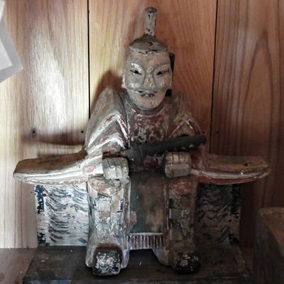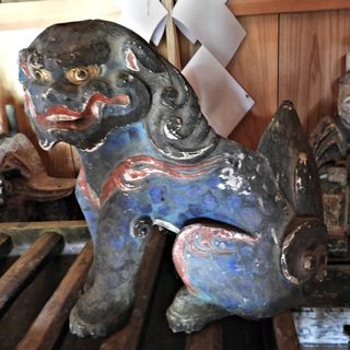 拝殿内の神殿狛犬。拡大写真はこちら。