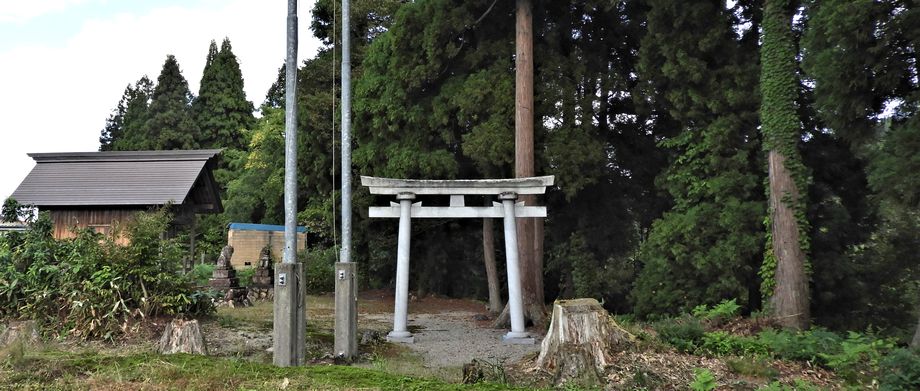 東経138度48分38.45秒、北緯37度14分46.73秒に鎮座。