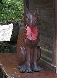 | 旧本殿への坂道には新旧の狐さんが居ました。 |