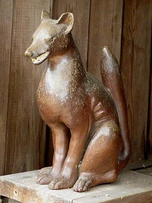 | 稲荷神社拝殿内にいる備前焼のお狐様 |