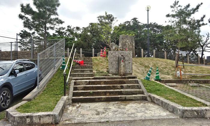 この石獅子は、沖縄自動車道・那覇ICの北西400m程の辺り、高台住宅地の崎山公園の中に置かれております。