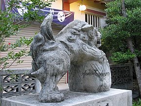 玉を抱えた狛犬は広島あたりに多いが、一体何を抱えているのでしょうか。