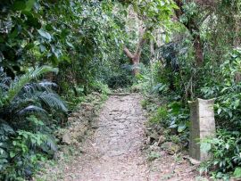 | 山道は石が敷き詰められた石畳の 緩い階段状になります。 |