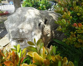この石獅子は、南城市役所の南2.5km程の辺り、當山集落センター敷地内に置かれております。