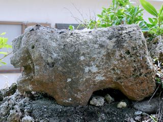 この石獅子は、南城市役所の南3km程の辺り、玉城中山の街角に置かれております。