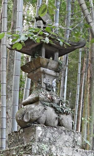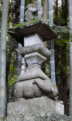 石燈籠を支える象