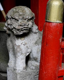 本殿縁側の狛犬。拡大写真はこちら。