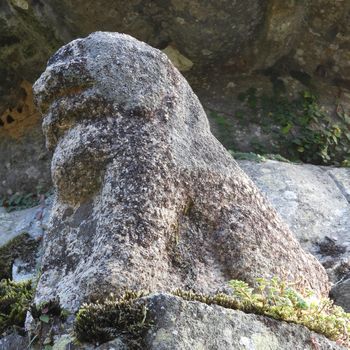 石燈籠を支える狛犬。拡大写真はこちら。