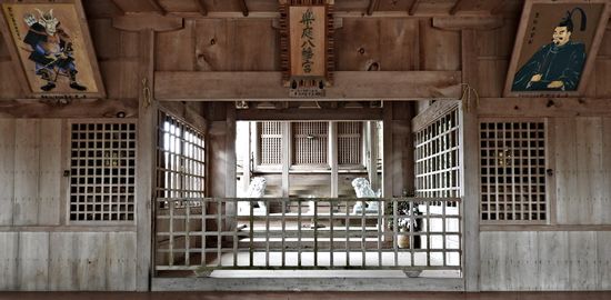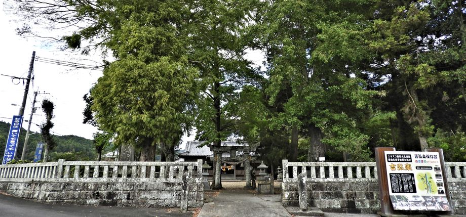 吉弘楽が行われることで有名な神社です。吉弘楽は、毎年旧暦の6月13日(現在は7月の第4日曜日)に行われます。由来は南北朝時代に戦勝・五穀豊穣・虫害防除などを祈願して始まったと言われています。総勢49人で行われる太鼓打ちは、立烏帽子・兜・陣笠をかぶり、腰蓑にワラジを履いた楽人が旗差物を背中に差すなど中世の武士を思わせる出で立ちで、太鼓を打ち鳴らしながら荘重かつ勇壮に舞います。1時間ほどですべての演目を終わると、旗差物の先につけた御幣が氏子に配られ、氏子はそれを持ち帰り水田に立てて虫封じのお守りにするのです。1996年に国の重要無形民俗文化財に指定されました。