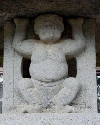 石灯籠と笠を支える力士