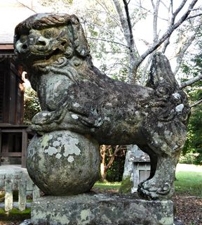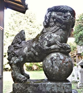 幣殿両脇の狛犬。拡大写真はこちら。