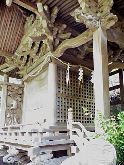 | 本殿 左右から 木鼻、組木、脇障子の彫刻など丁寧に造られています。 |