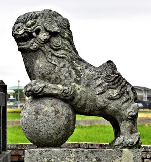 拝殿覆屋前の狛犬。拡大写真はこちら。