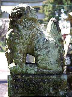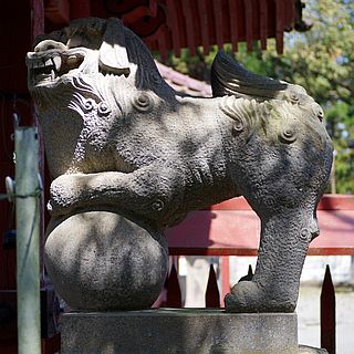 | 脇参道入口の玉乗り狛犬。拡大写真はこちら。 | |