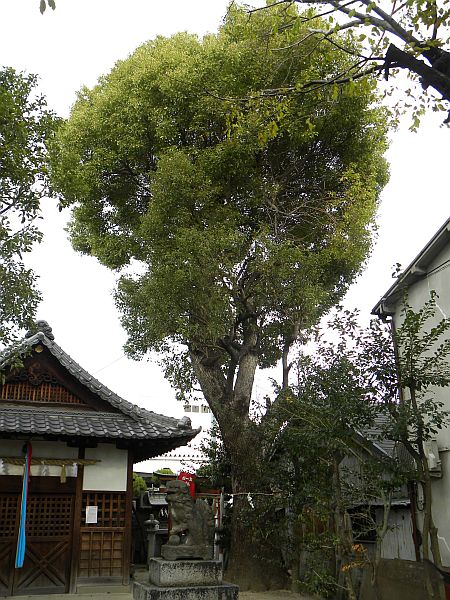 由緒:当神社の創始は藤原時代萬壽二年三月(1025)此の時 五畿内に悪病が流行した為、悪病封じ村内安全を祈願の為、京都東山の吉田御殿に請願して御神体を給わり発祀されたと宮座の古書にある。大和川付替以前に度々水禍を蒙ったが、その都度復旧された。