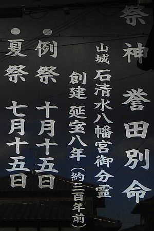 由緒:御祭神は誉田別命で、延宝8年(1680)京都山城国・石清水八幡宮より御分霊され、創建されました。
