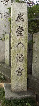 江戸時代まで、境内には黄蘗宗の神宮寺があり、社僧が奉仕していました。現在の八幡宮は昭和53年の再建ですが、それまで旧社務所には神宮寺の仏間が残されていました。神仏習合の信仰が息づいていたのです。神宮寺は、明治初年の廃仏毀釈で廃寺となり、その仏像や什物は他所に移されました。このうち、本尊であった阿弥陀如来座像は近くの天美我堂7丁目の善正寺に納められました。