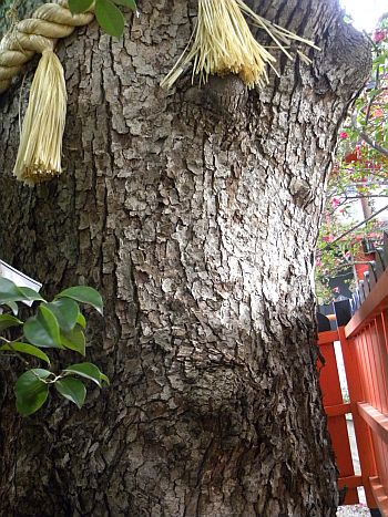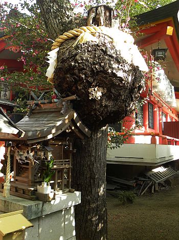 この社で目を惹かれたのは幹に大きな瘤がある大楠で、その生命力の強さにあやかって白髭大神がお祭りされていました。