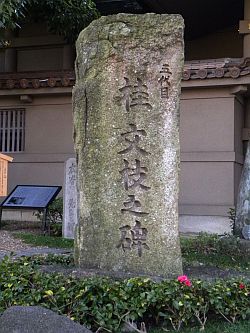 | 参道右に有る北野恒冨筆塚 |