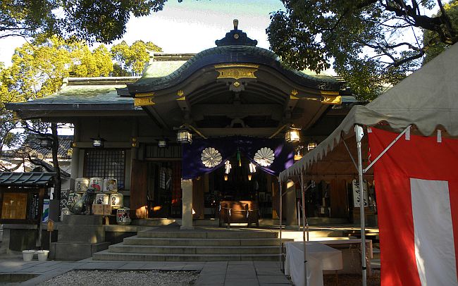 由緒:当宮は浪速の地を皇都(高津宮)と定められ大阪隆昌の基を築かれた仁徳天皇を王神と仰ぐ神社であります。