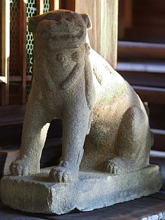 | 本殿石垣上に居た瓦材の狛犬さん | |