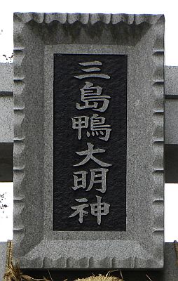 | 社号標「式内 三島鴨神社」 | 二の鳥居に掛かる額「三島大明神」 |