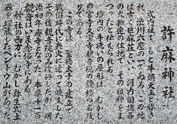 | 鳥居に掛かる額「郷社 許麻神社」 |