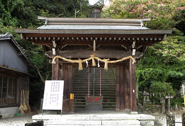 | 石段途中に立つ二の肥前鳥居 |