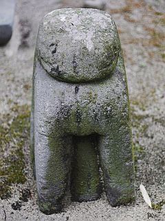 やや大柄で縦置き、阿吽の位置が反対です。磨耗が激しく顔の表情も定かではありません。