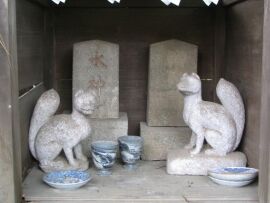 水神社と弁財天の文字碑と、狐さんが住んで居ました。