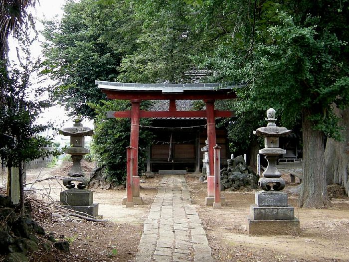神社は、県道78号線を久喜市(旧菖蒲町)方面に向かい、岡泉信号から約500メートルを左に入った岡泉地区にあります。狛犬は獅子山に年号の刻まれた石板が差してあったことから、明治5年(1872)かもしれません。吽の前には木があって、正面からは全く見えないのが残念でした。拝殿の屋根が一部落ちていて、早い修理が待たれます。水盤は嘉永元年(1848)と嘉永4年(1851)のものが左右にありました。