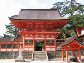 この神社は出雲市の北西、日本海に突き出た日御碕の突端近くに鎮座しています。出雲国風土記では「美佐岐社」と呼ばれ、平安時代の書物「延喜式」では「御碕神社」と書かれた式内社で、旧国幣小社です。