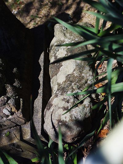 | 上の境内へと続く石段参道途中にいる出雲構え獅子 狛犬の拡大写真はこちらで |
