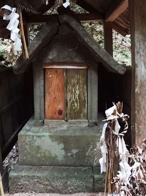 道路から「延喜式内 布吾彌神社」や「布吾彌神社 出雲国風土記登場地」の社号標と鳥居が見えるので、必ず神社が鎮座しているのは分かるのですが、鳥居を潜った後山中にある社地までの参道は、踏入るのに少し勇気がいる程踏み跡も疎らで、一人で参拝するのは結構勇気がいる神社でしょう。