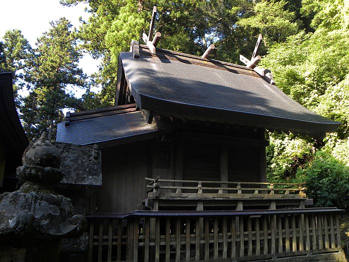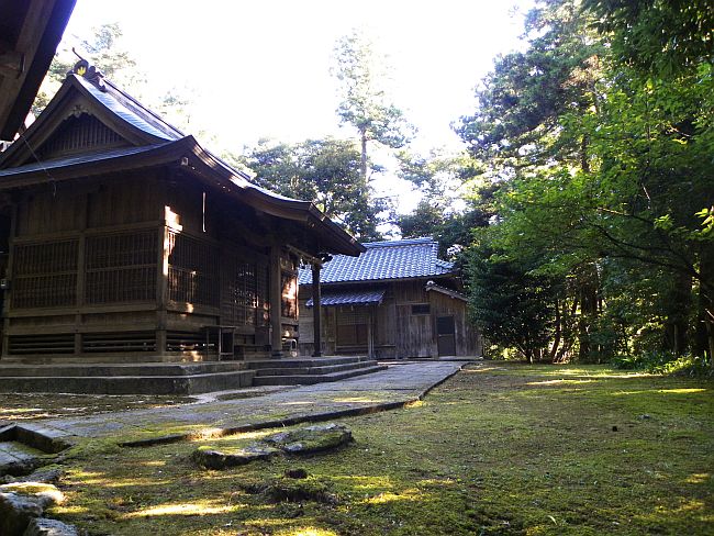 随神門を潜ると境内があり中央に拝殿・本殿が建立されています。左手には岩の上に祀られた社日と小祠が間つられ、右手には社務所らしき建物と境内社・稲荷の祠などが祀られています。