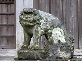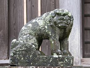 神社入り口の脇に居る、一体だけの初め型狛犬。